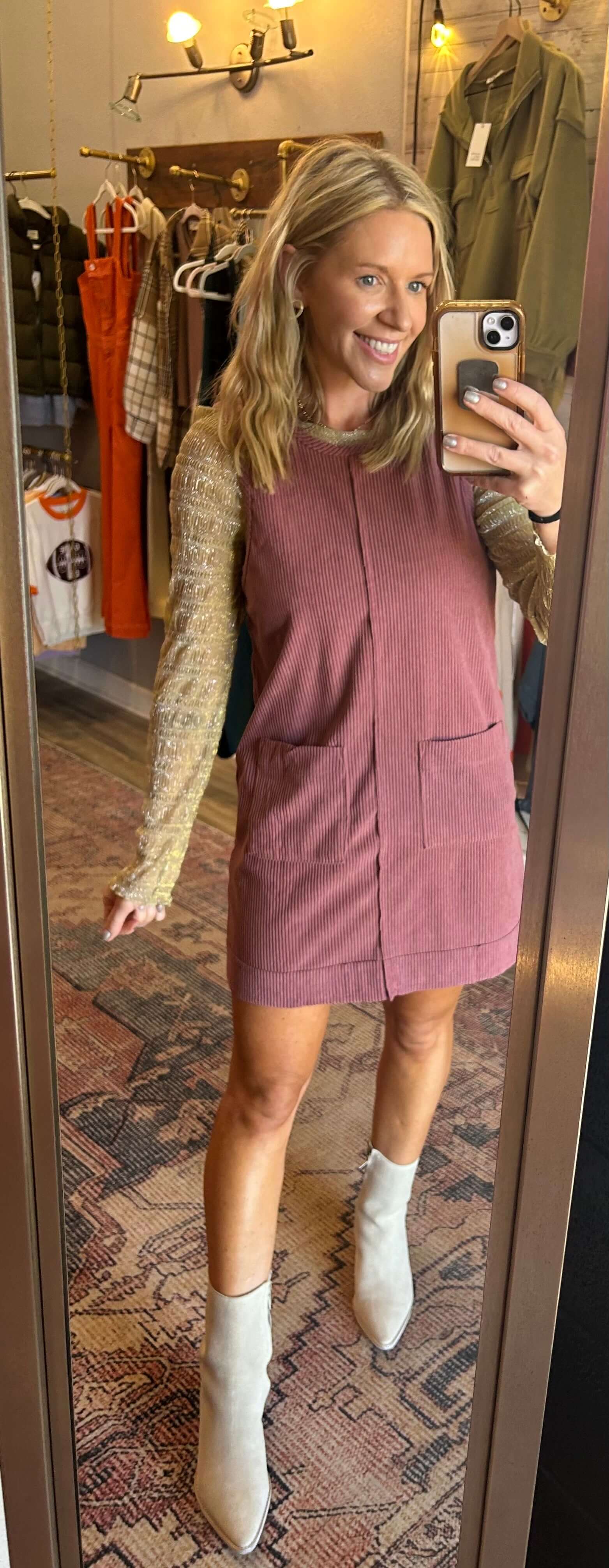 A fall staple for any occasion !! Our scoop back detail corduroy dress will be great for all things fall ! Dress up or down with your fav boots !