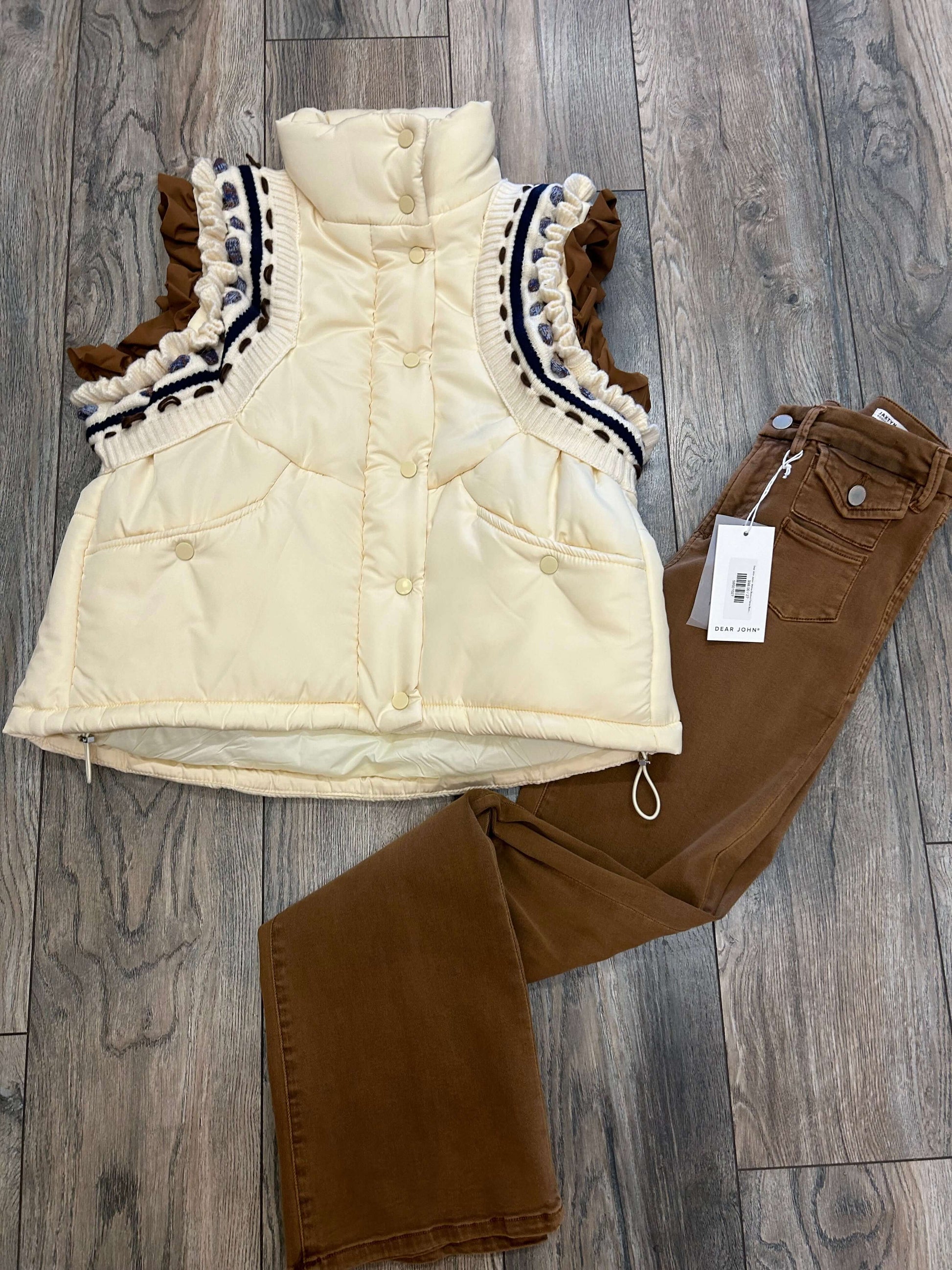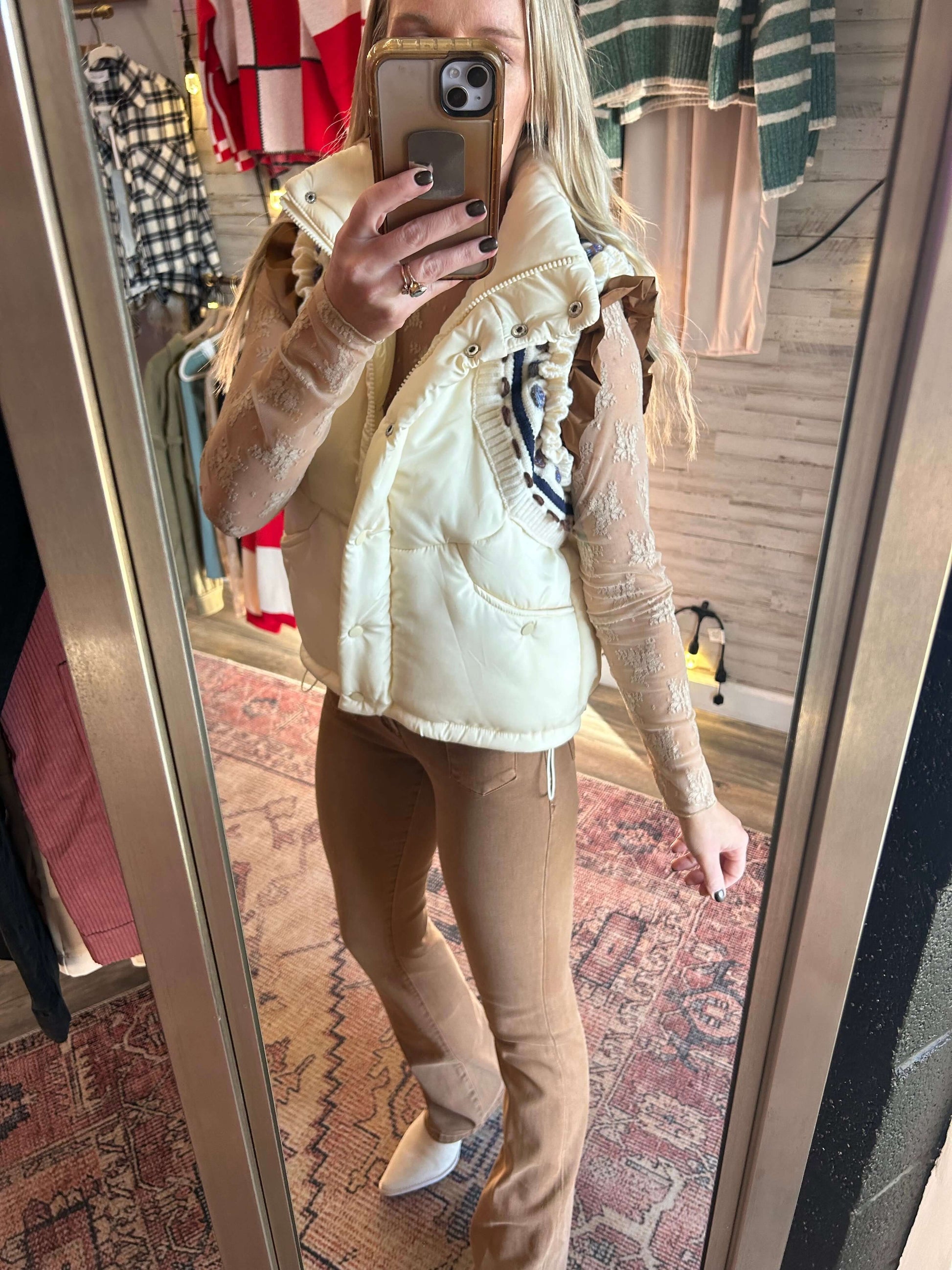 The perfect best for fall!! All the details on the Ruffle sleeve and sweater knit stitching
