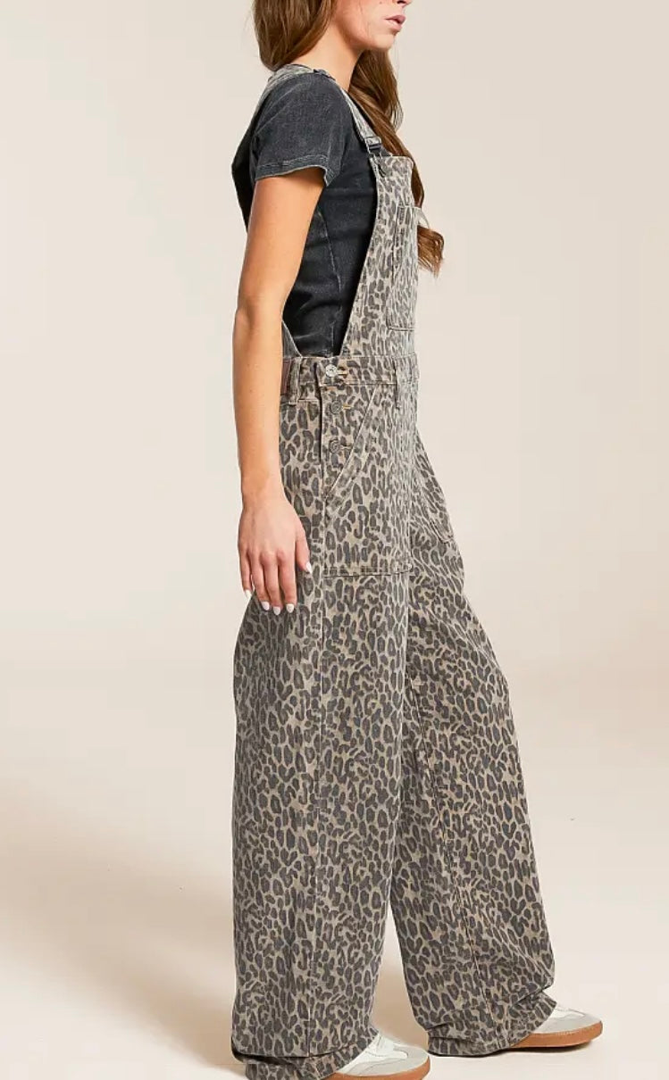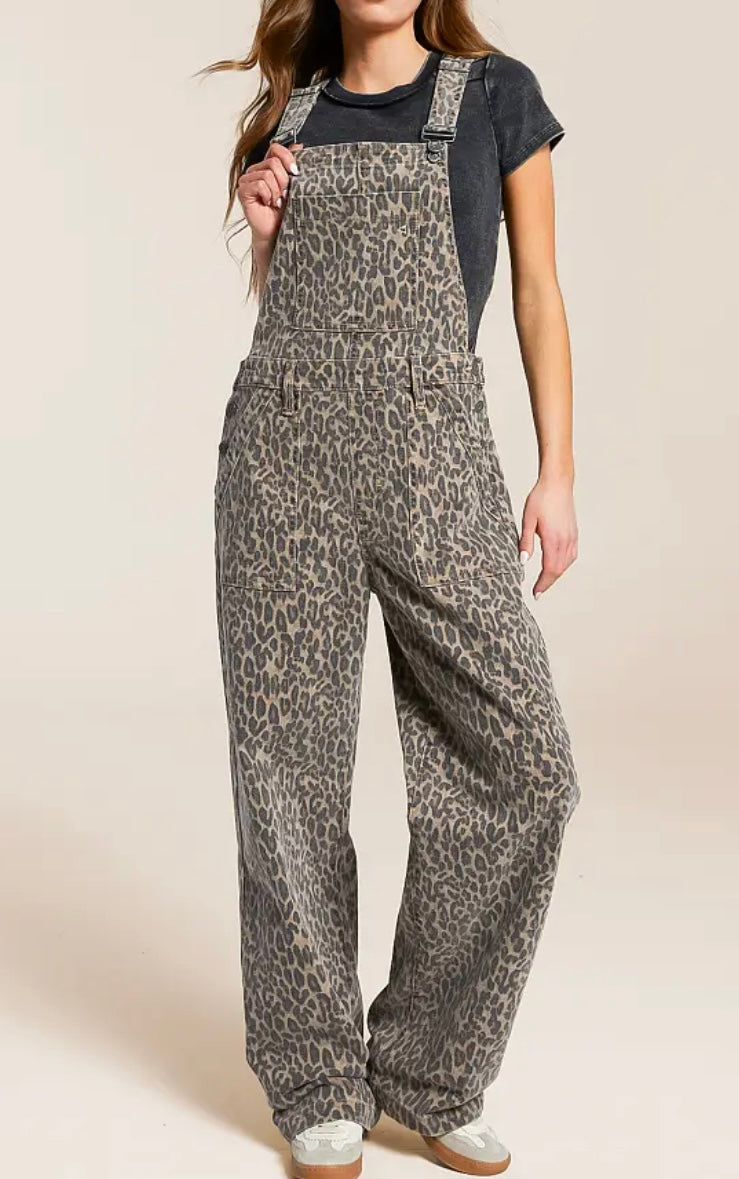 Roar into style with HIDDEN Dylan Cheetah Baggy Denim Overalls! These animal print overalls feature a relaxed fit, adjustable straps, and multiple pockets for both fashion and function. Unleash your inner fashionista with these spot-on overalls from Hidden!