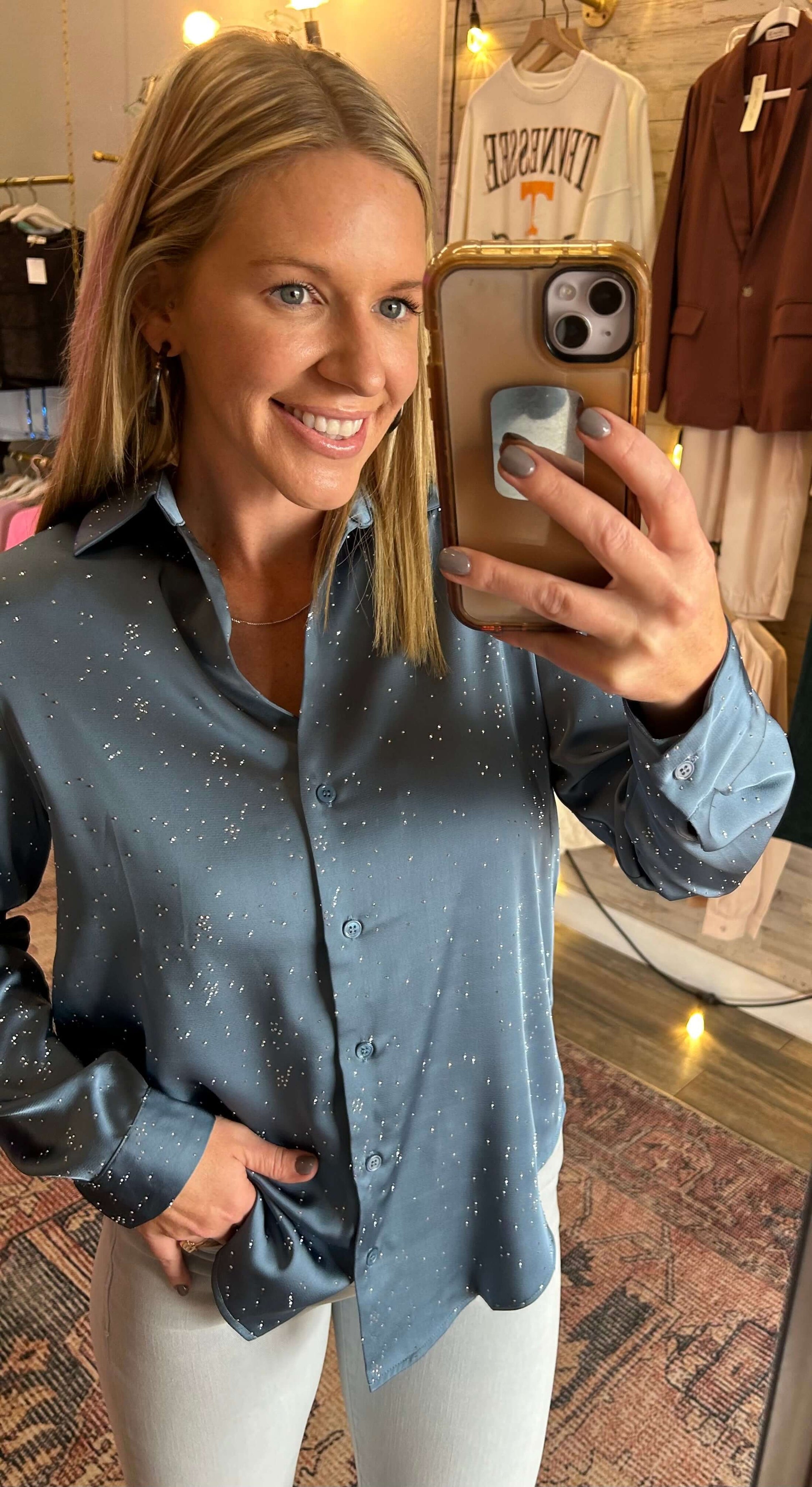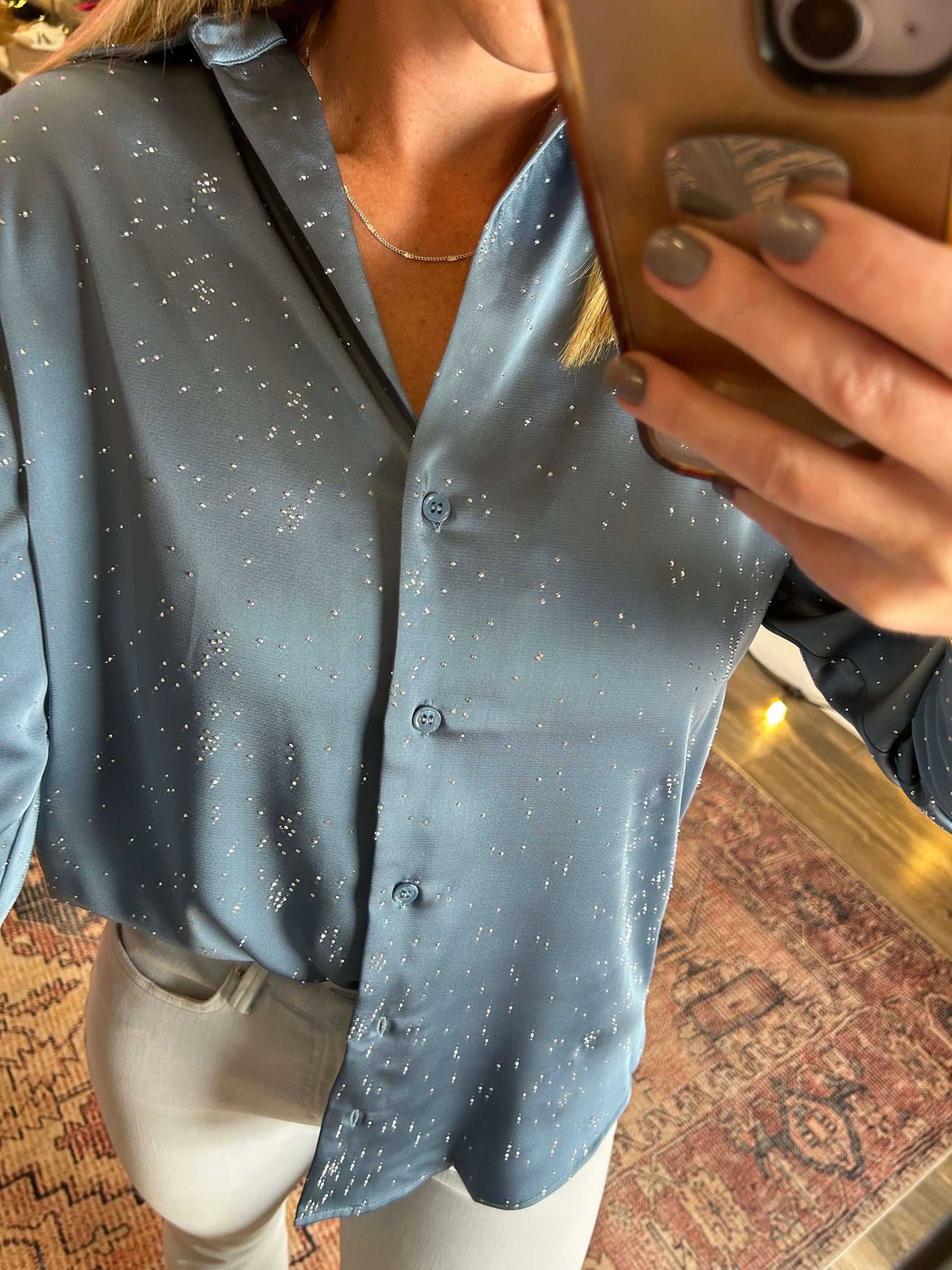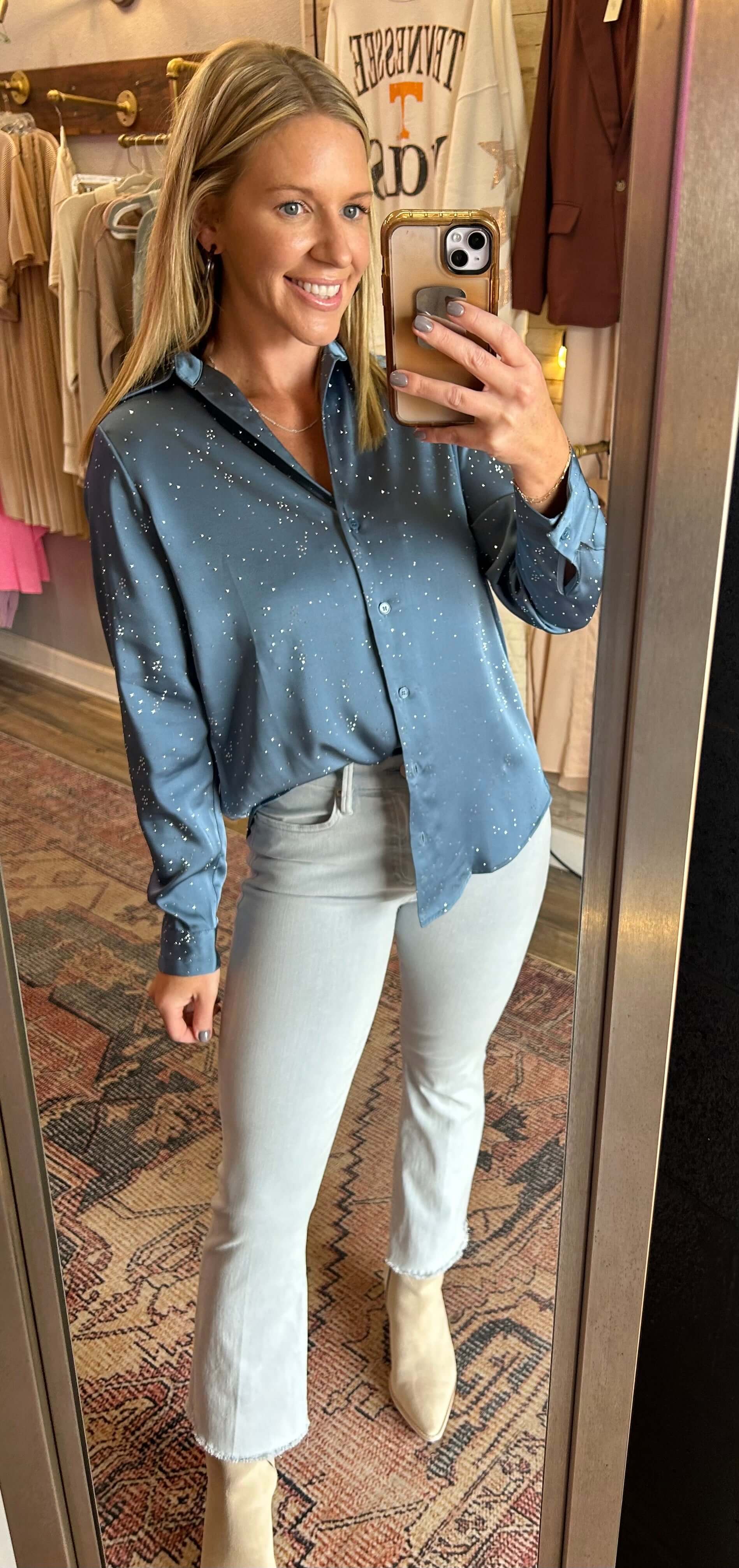 Hot Fix Button Down Blouse/ with embellished detail