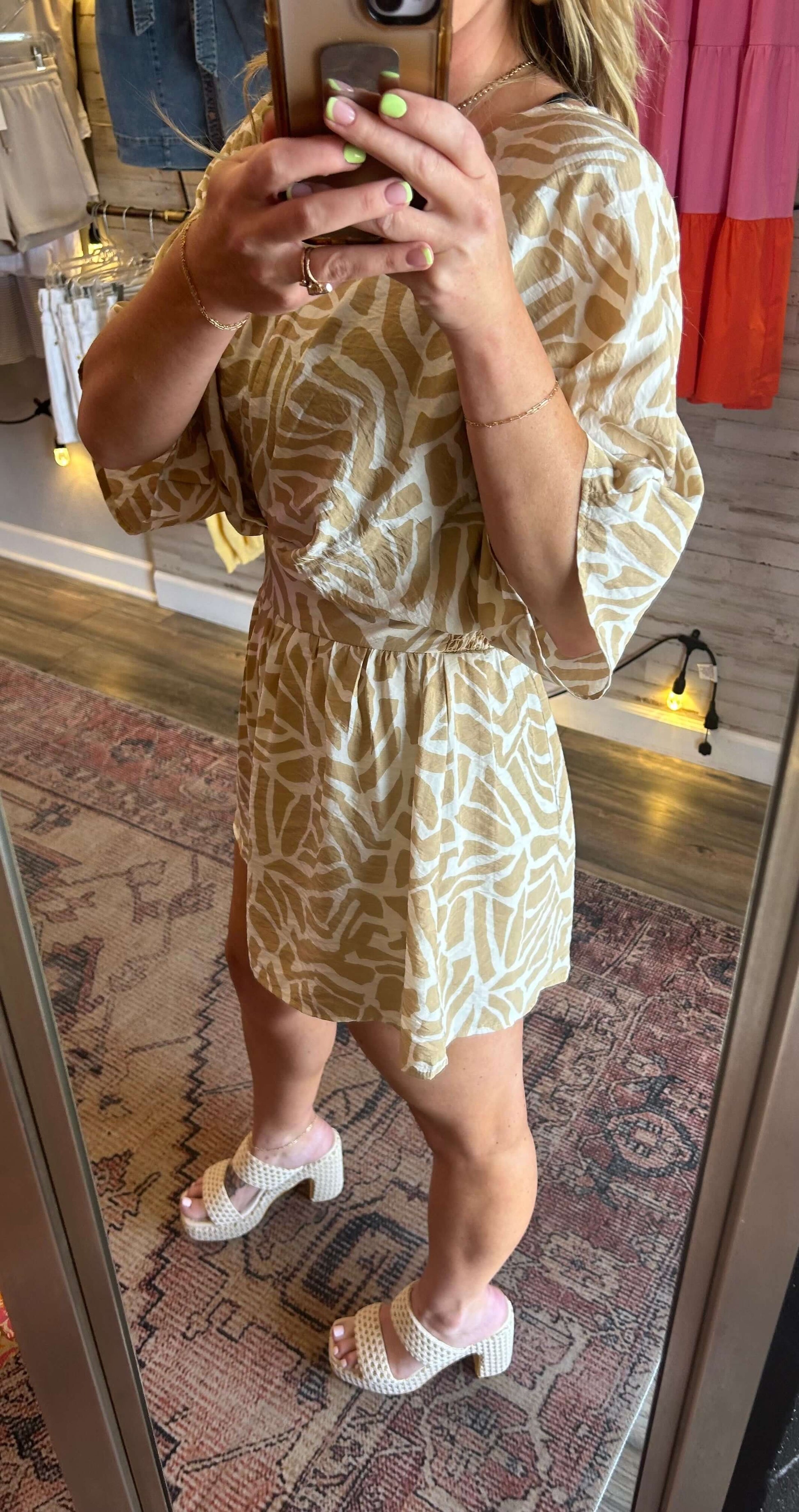 Taupe / ivory abstract pleated front and the back tie details , shorts fully lined