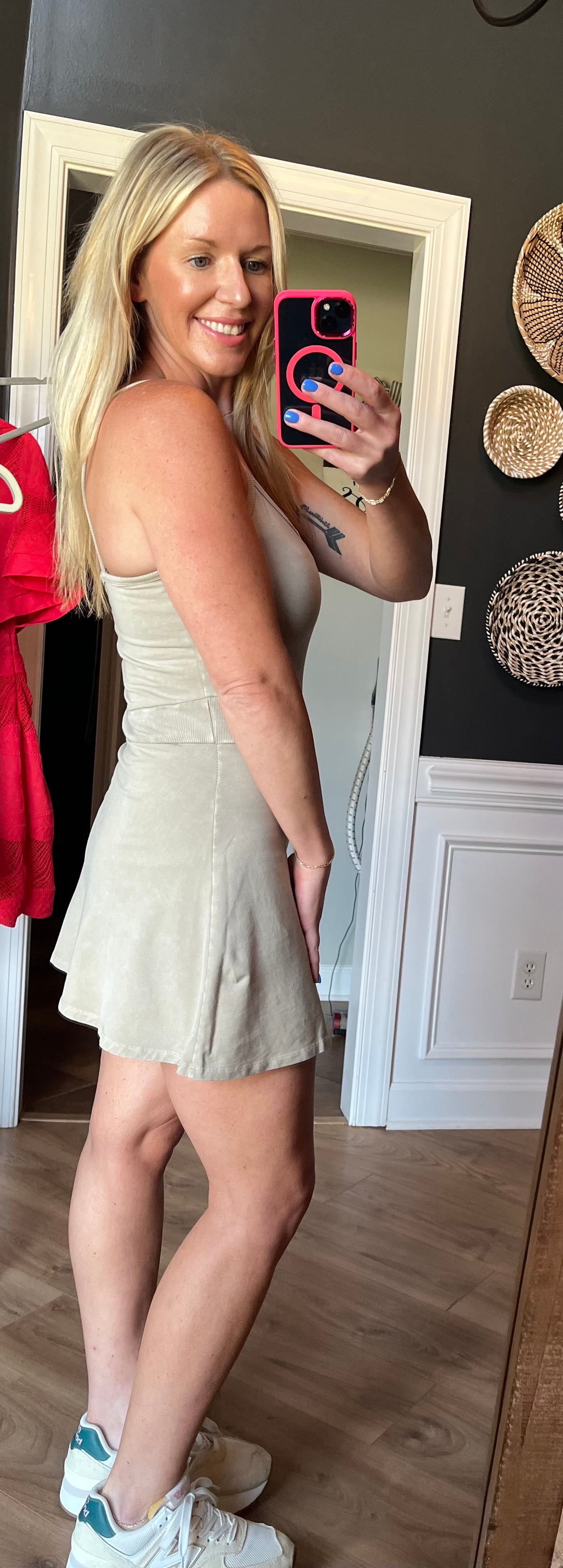 Mineral wash lightweight breathable fabric with built in shorts and ribbed middle contrast