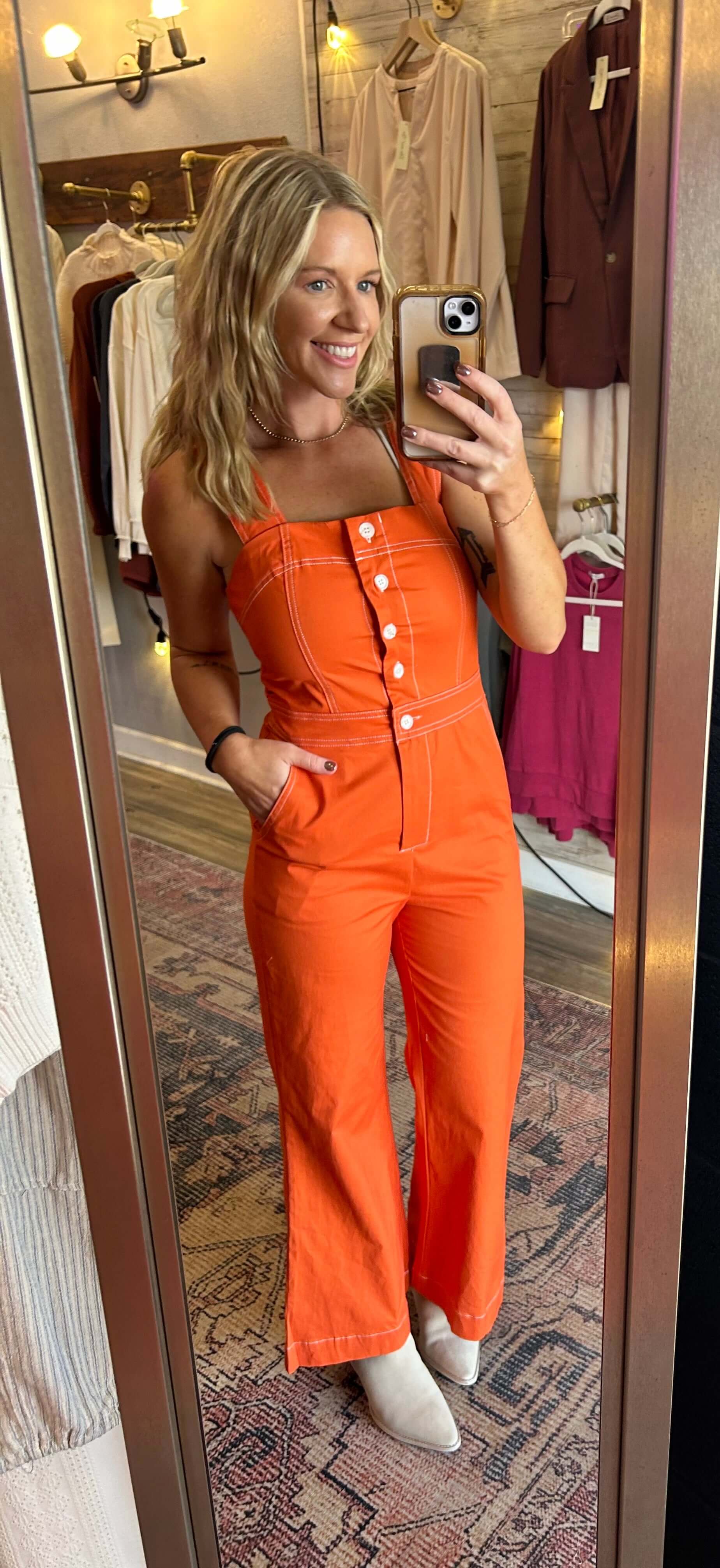 On Point Square Neck Wide Leg Overall Jumpsuit / Orange