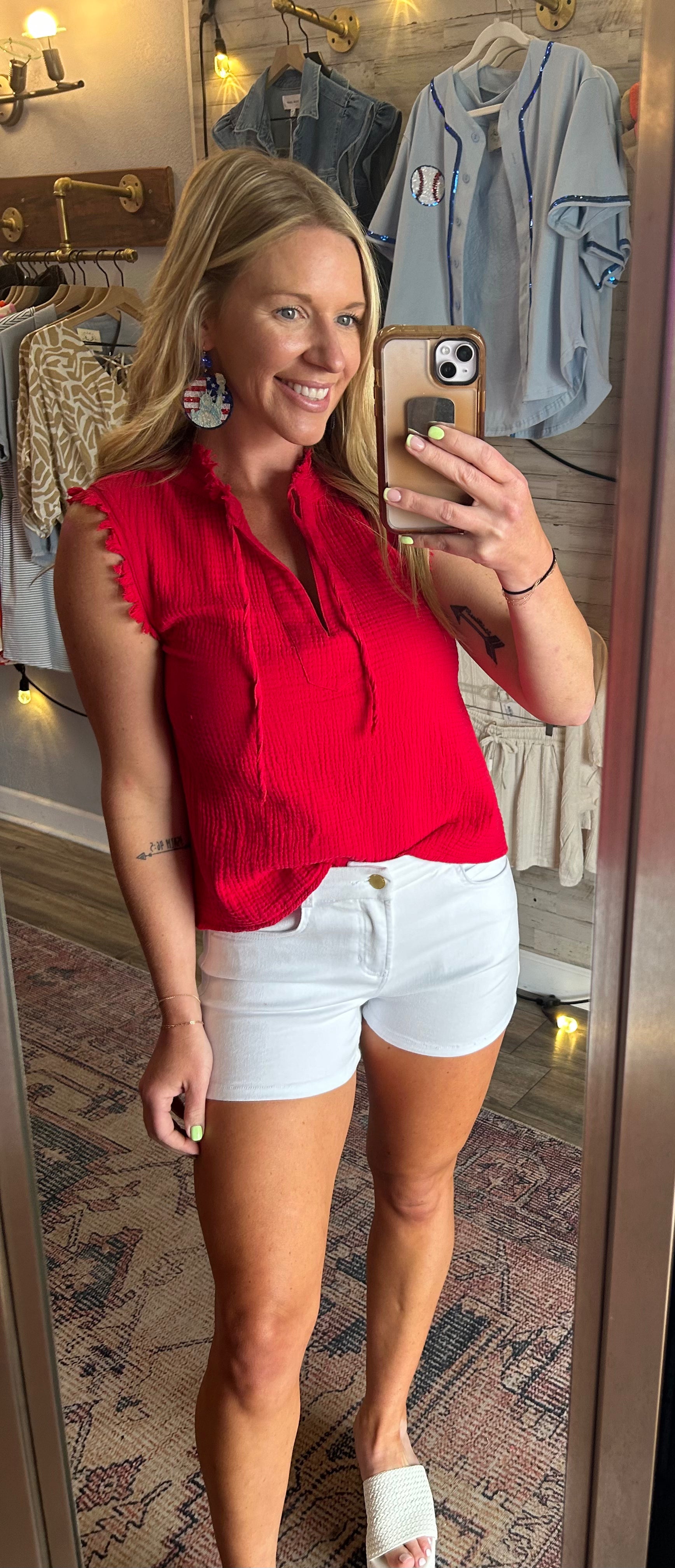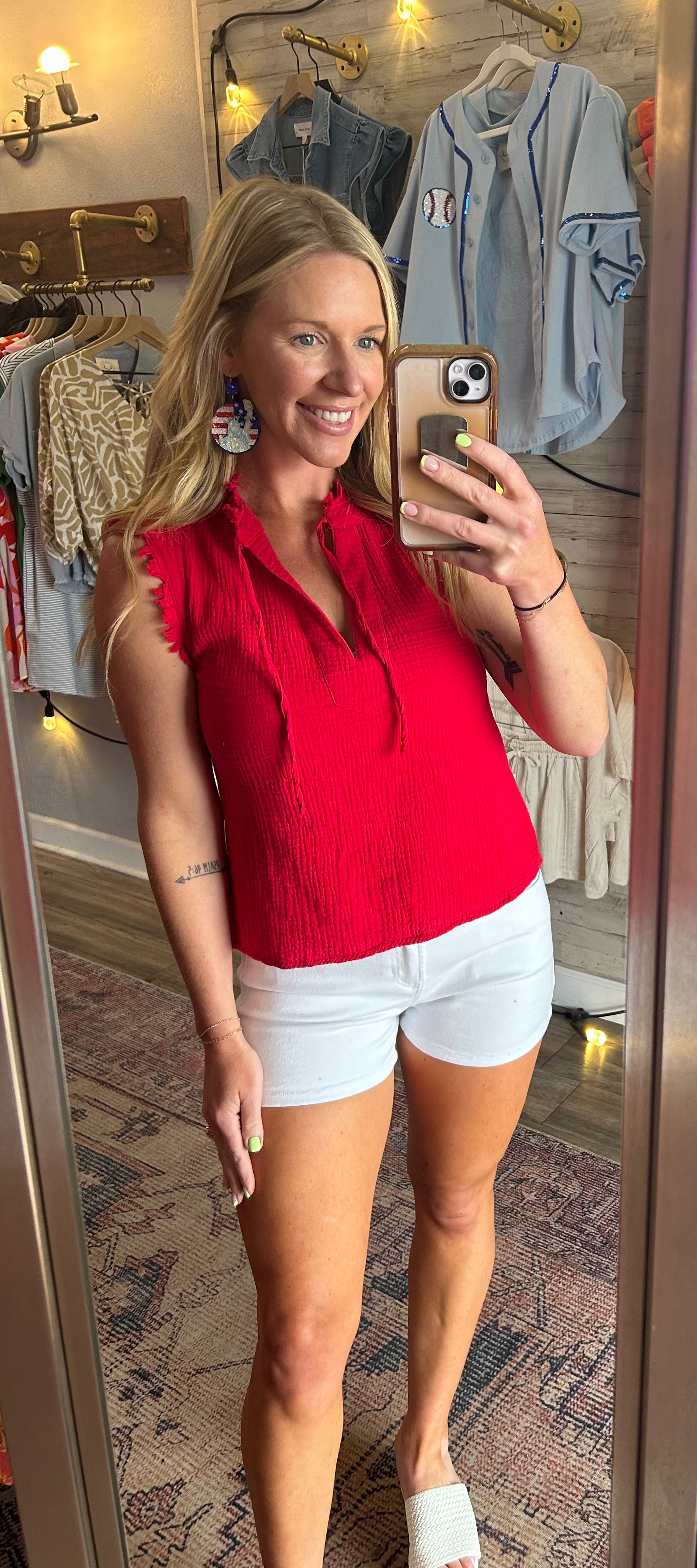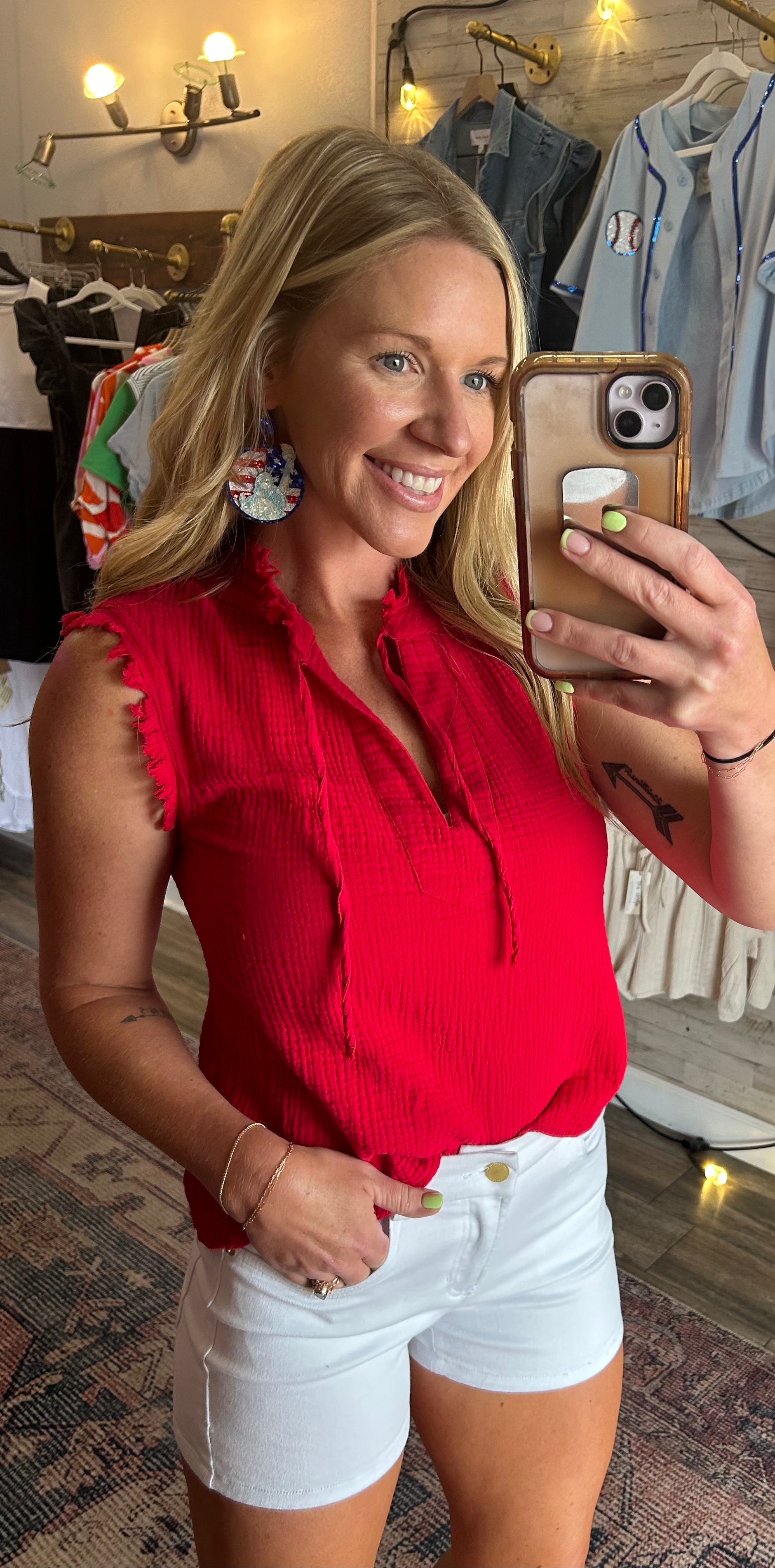 Perfect gauze top For summer !! Distressed frayed hem sleeve detail