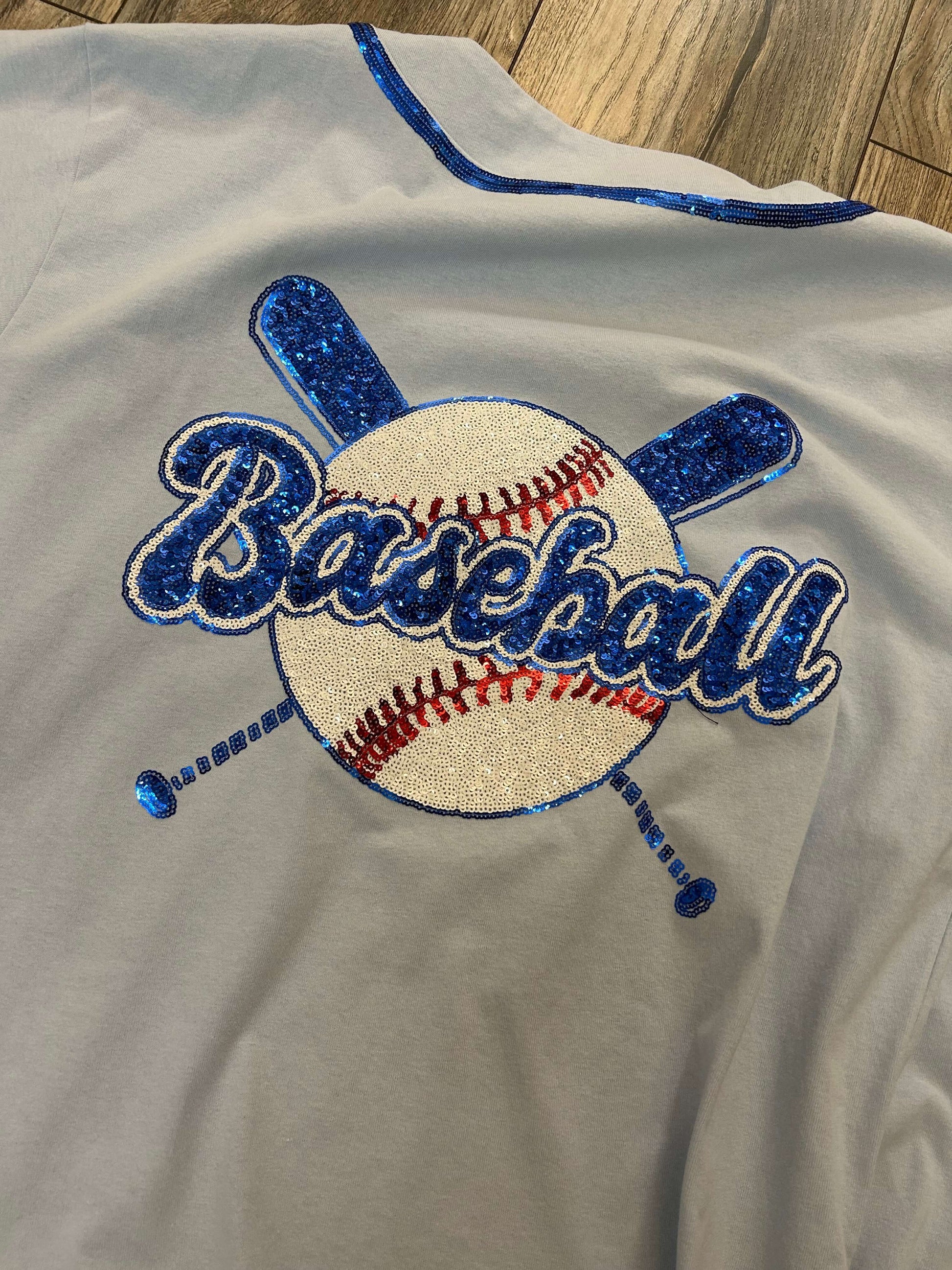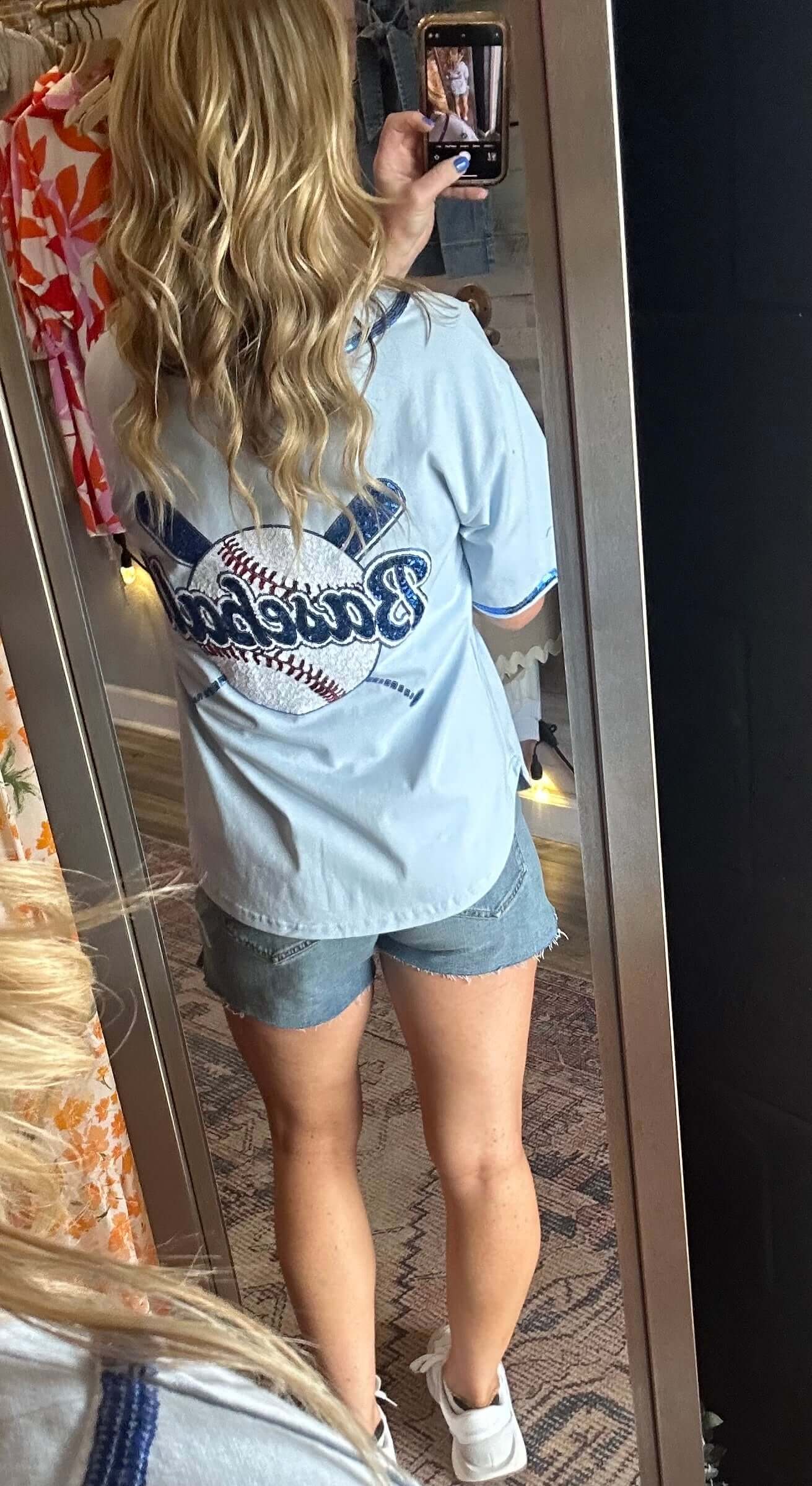 Boujee baseball mom’s this one is for you !!! How fun is the sequin details and the “jersey “ style button down top ! Small pictured